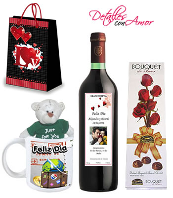 En DetallesconAmor.com, especialistas en flores y regalos le ofrecemos un lindo combo que incluye: Un Vino personalizado con su foto y su dedicatoria en el reverso de la botella. La Impresión de ambas etiquetas es super nitida.