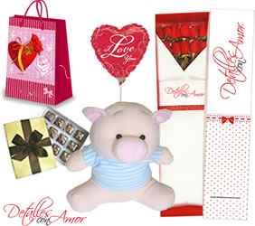 Linda chanchita con rosas y chocolates
