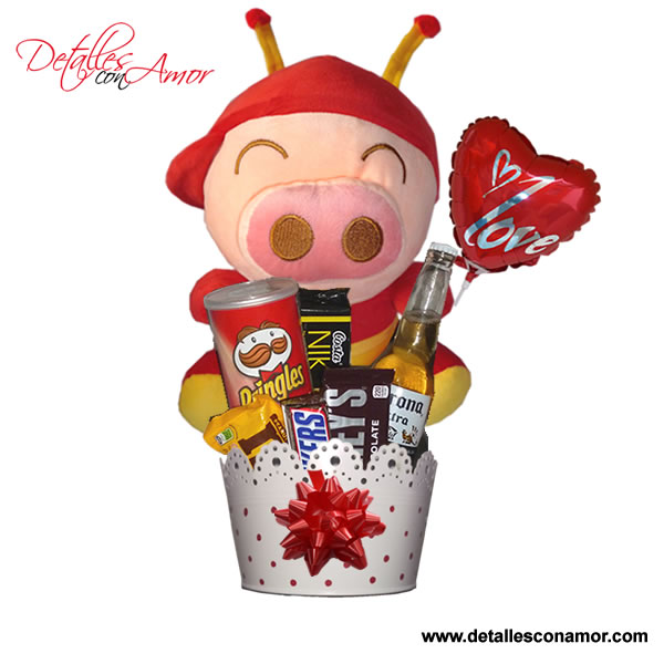 dedicatoria que desee; todo dentro de una bella bolsa de celofan.