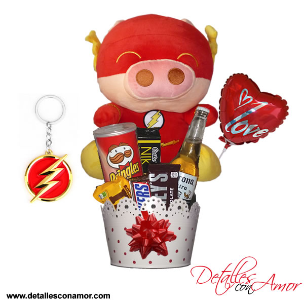 1.- Un lindo Chanchito vestido de FLASH de 28 cm de alto.